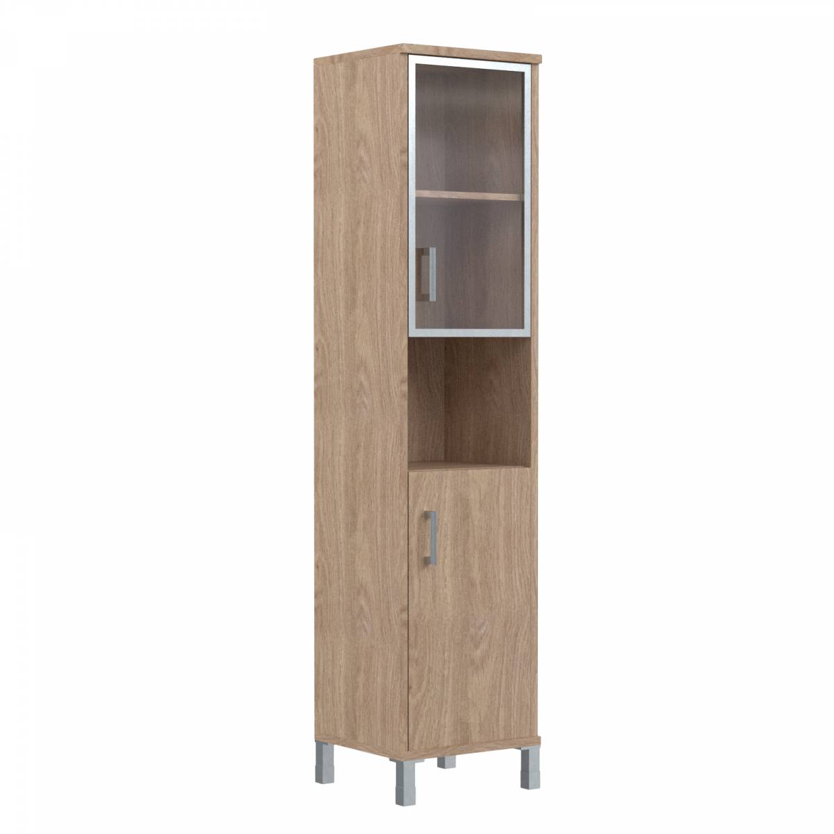 Шкаф-колонка средняя с малой стеклянной дверью в AL-рамке B 421.4(R) Дуб Девон 475х450х1286