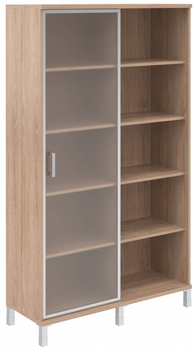 Шкаф-колонка высокая с малой стеклянной дверью в AL-рамке и глухой B 431.9(R) Дуб Девон 475х450х2054