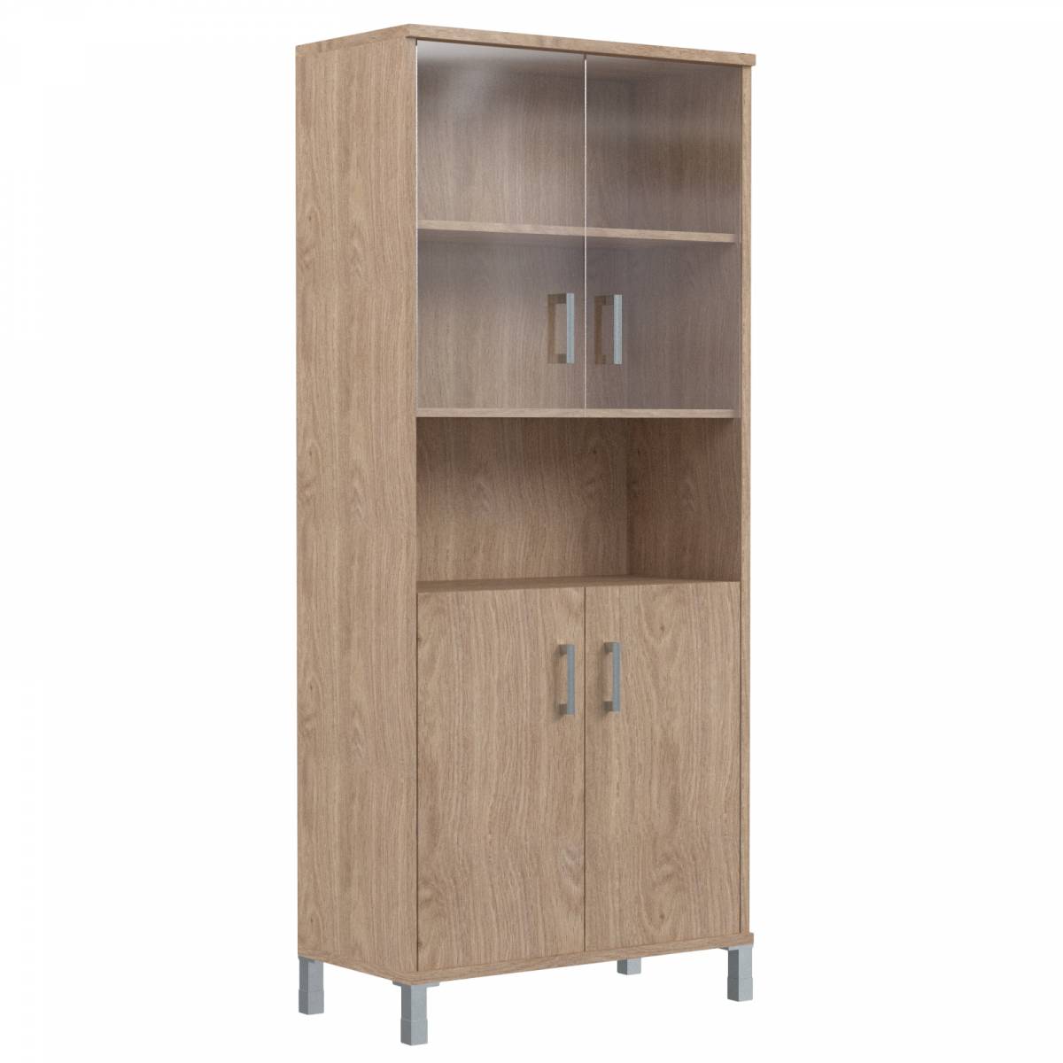 Шкаф высокий с малыми стеклянными и глухими дверьми B 430.10 Дуб Девон 900х450х2054
