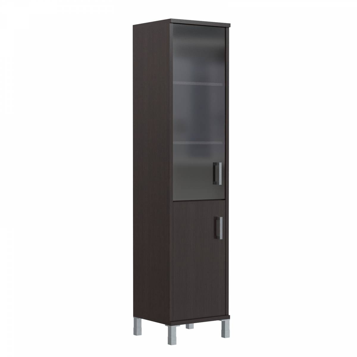 Шкаф-колонка высокая с малой стеклянной дверью в AL-рамке и глухой B 431.9(L) Венге Магия 475х450х2054