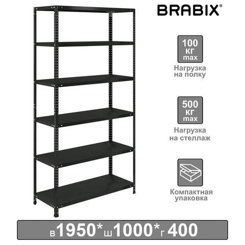 Стеллаж металлический "MS 220/60-6", 2200*1000*600 мм, 6 полок, 291376