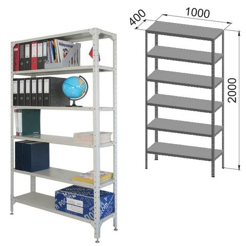 • Стеллаж металлический "УНИВЕРСАЛ", 2000х1000х400 мм, УСИЛЕННЫЕ СТОЙКИ, 6 полок, регулируемые опоры, 290349